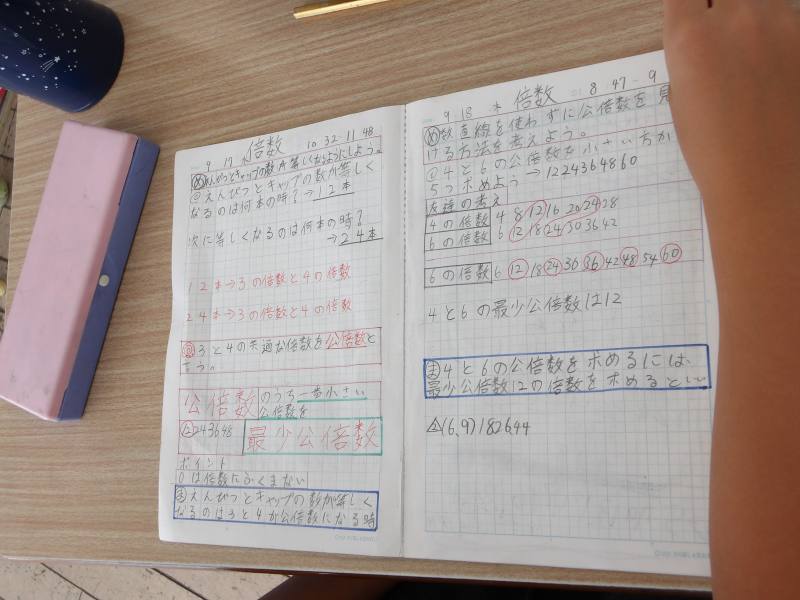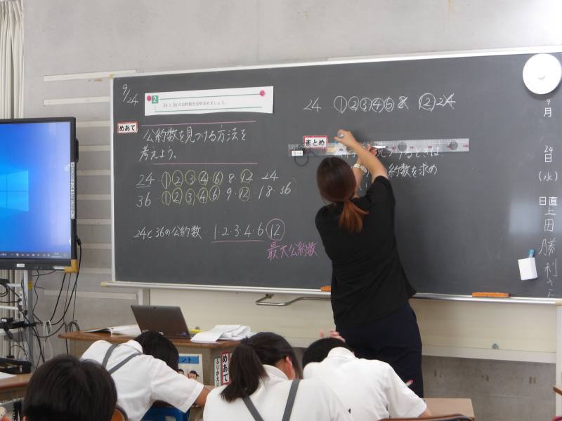 5年、算数の最大公約数を求める授業です。24と36の公約数について考えました。