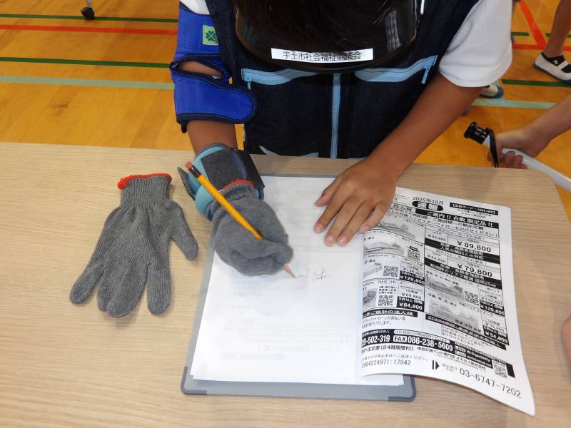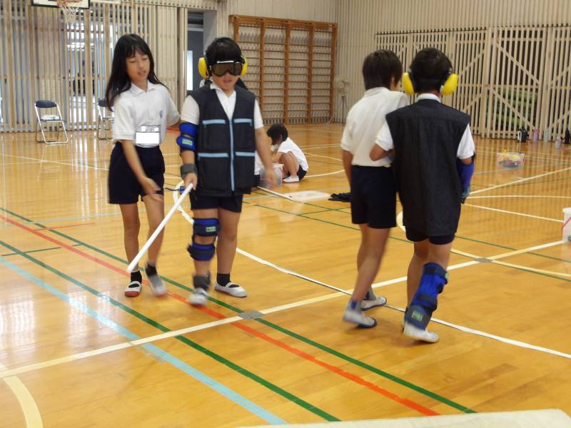 宇土市社会福祉協議会の方々に来校いただき、高齢者疑似体験をしました。