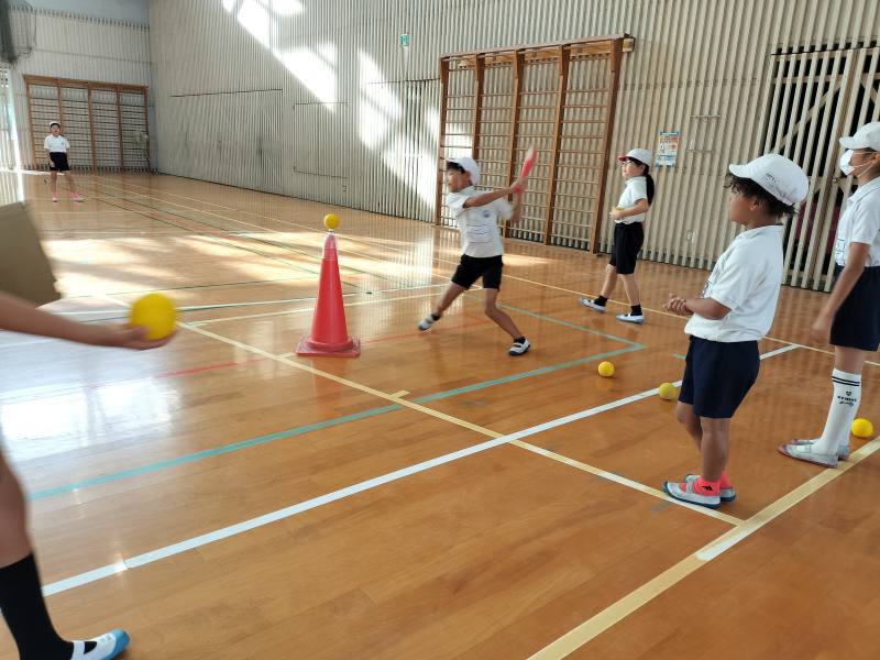 ルールを確認したあと、バッティング班と球拾い班に分かれて始めます。
