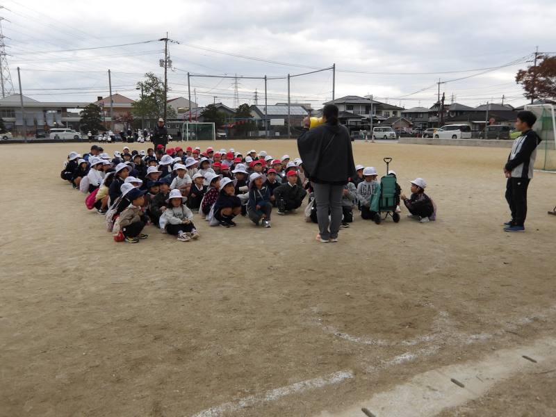 みんなが安全に探検をするために、先生がしっかりとお約束を話しています。