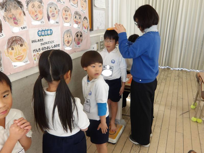 身体測定を行っています。また少し、大きくなったかな?