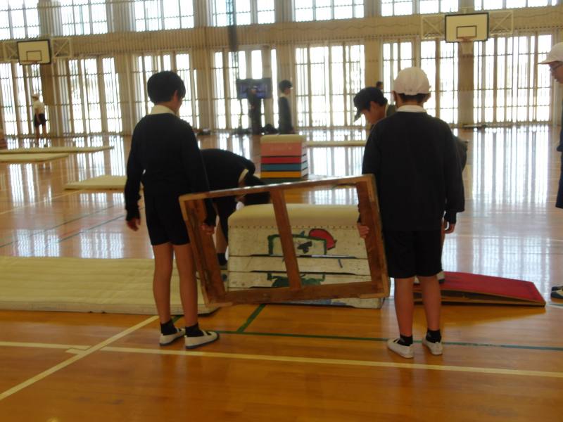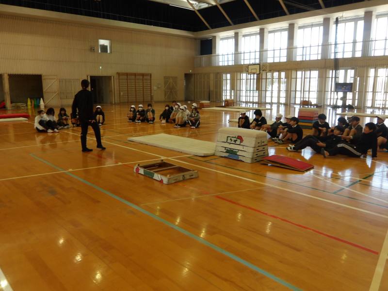 もう一つアドバイスとして、手は跳び箱の奥の角をにつくように置いて飛ぶ、ということを話されました。「それぞれ頑張ってみましょう!」