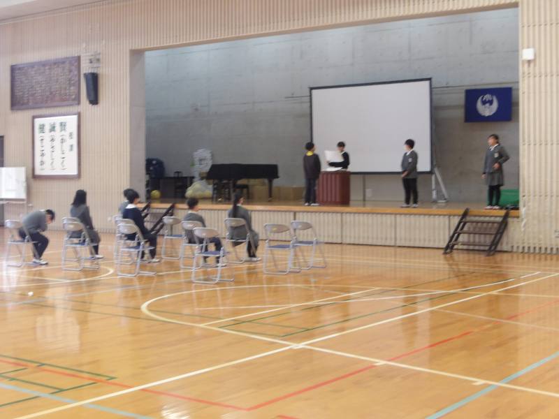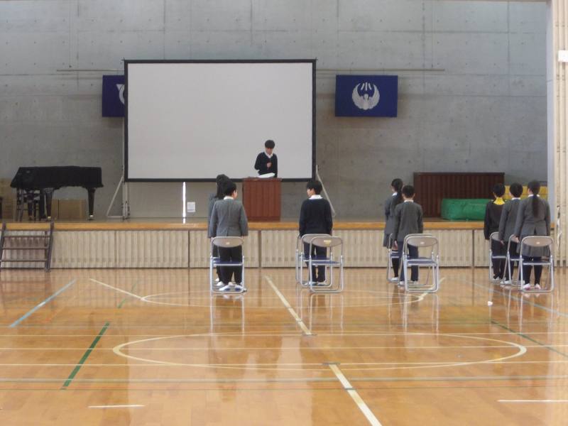 体育館に1チームいました。卒業式ごっこをしています。