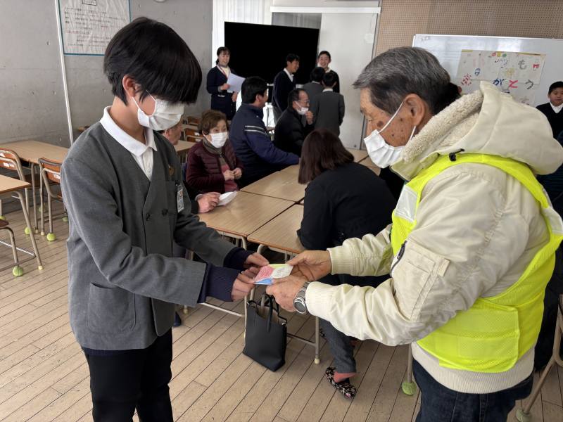 各教室で給食を一緒に食べながら会話したり、卒業プロジェクト「地域の方々へ感謝を伝えよう」を担当する子どもたちがメッセージカードを渡したりして、日頃の見守りへの感謝の気持ちを伝えました。