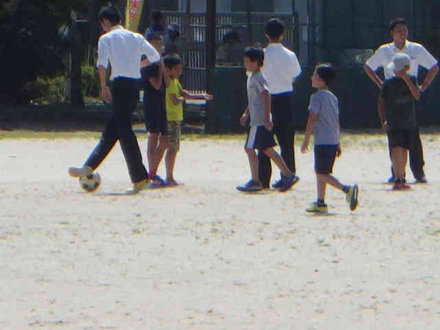 休み時間には,小学生も高校生も元気に運動場に飛び出してきた・・・